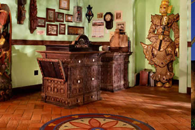 For those trekkers wishing to linger and experience the local hospitality of the restaurant, they are welcomed into the refreshing air-conditioned world of a converted fifty year-old stone house. The house, barely recognizable under its 17,000 sq ft of decades old enveloping multiple additions, was a wealthy merchant’s private two-story residence that has been converted to a 250-seat restaurant and hotel. Inside, after walking through the warm and welcoming lobby, the traveler is greeted with a space filled with the merchant’s personal collection of Asian artifacts, puppets, furniture and cabinets. The interior architecture, mimicking the eclectic exterior, ranges from British Colonial to present day. There are even remnants of an old exterior garden and patio inside!
